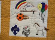 Paddie-Lynn Schlueter, details of family blocks, each column representing one branch, all hand embroidered
