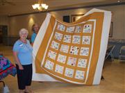 Check out the Allamanda members at the April 5th Guild Meeting! Melanie Konopka showed her Royal Crown quilt and Ellen Damron previewed her owl wallhanging that she designed and quilted, a unique gift for Bradley!