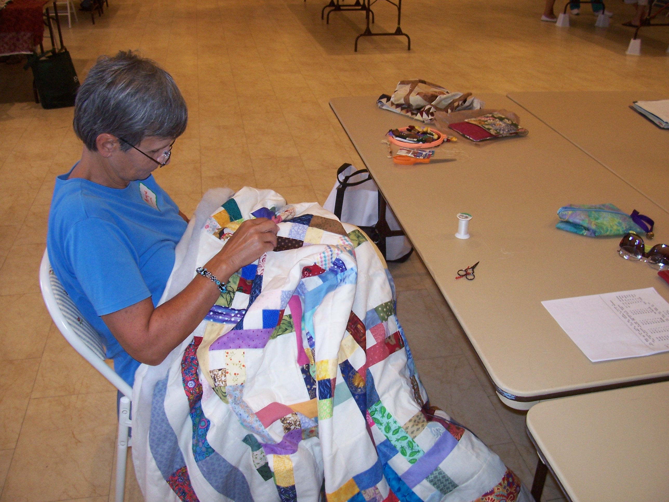 Not to forget that chapter meetings are also for projects, Monique Foley was working on another quilt.