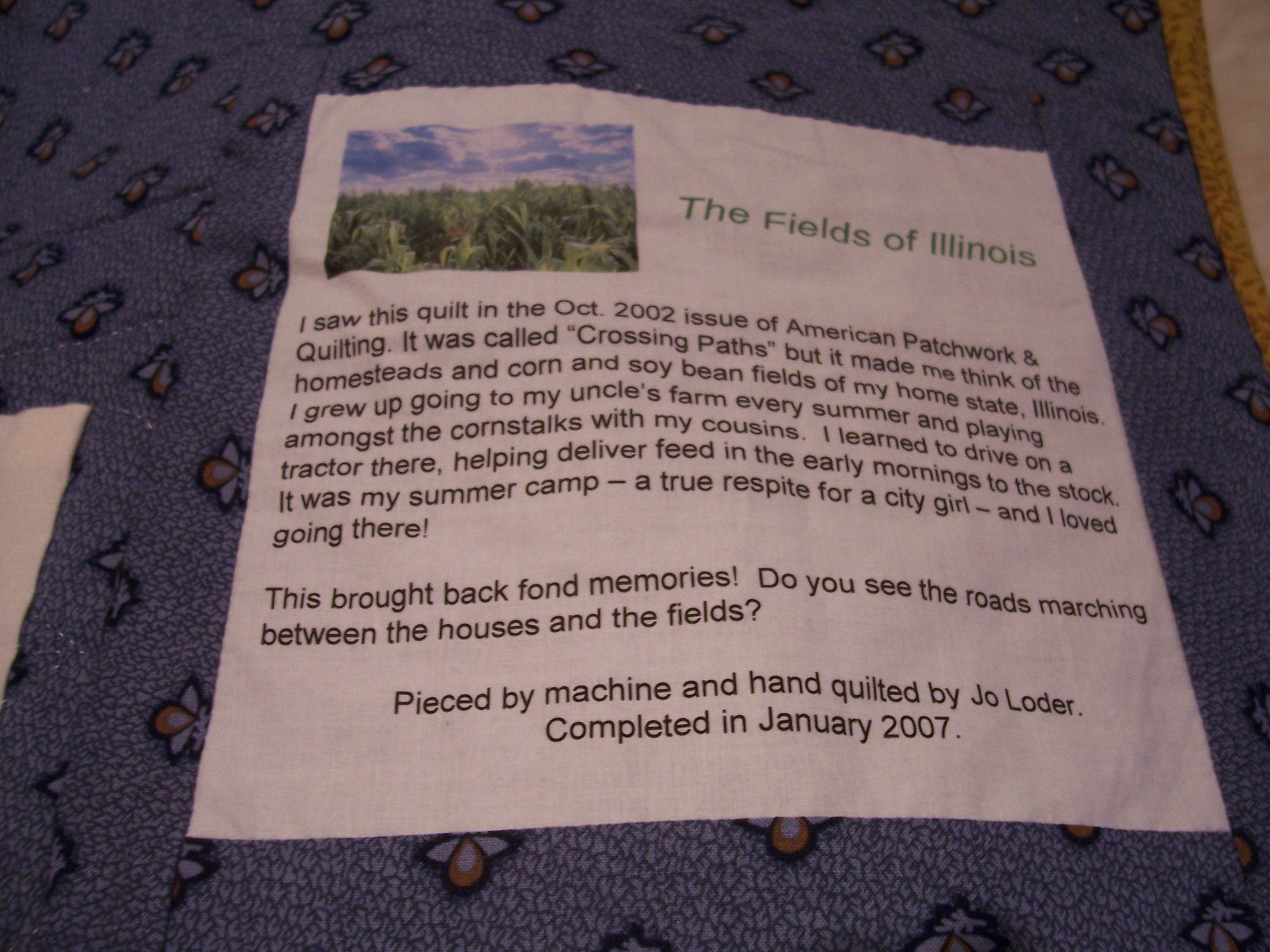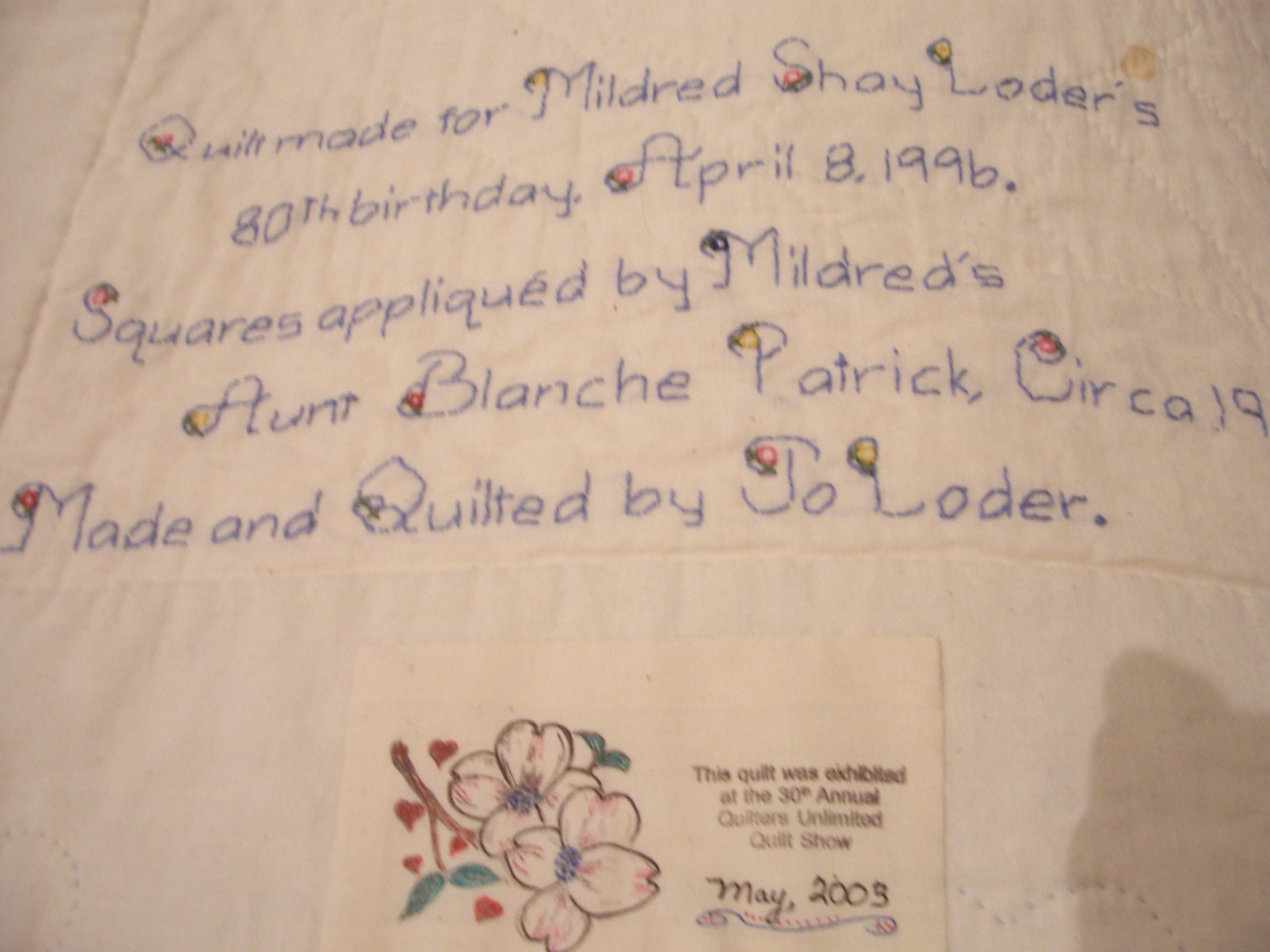 Jo Loder conducted a workshop on what some people call the last step in quilting -- labeling. A quilt label identifies the maker, date completed and recipient. Quilts are often a legacy, made with love to recognize special occasions or to provide comfort to strangers. Labels help guard against theft, tell a story or send a special message. There are many fun ways to make labels and to incorporate them into a finished product.